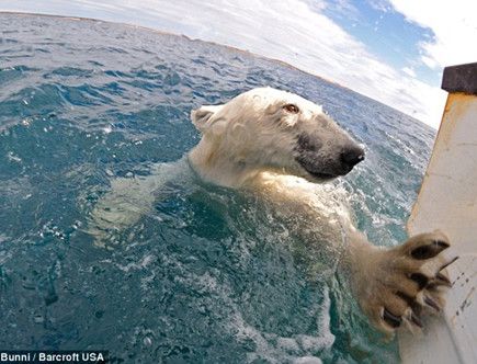 法摄影师拍北极熊嬉水照 遭熊掌袭击