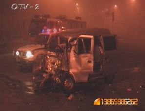 路口红绿灯“休息” 面包顶翻厢货