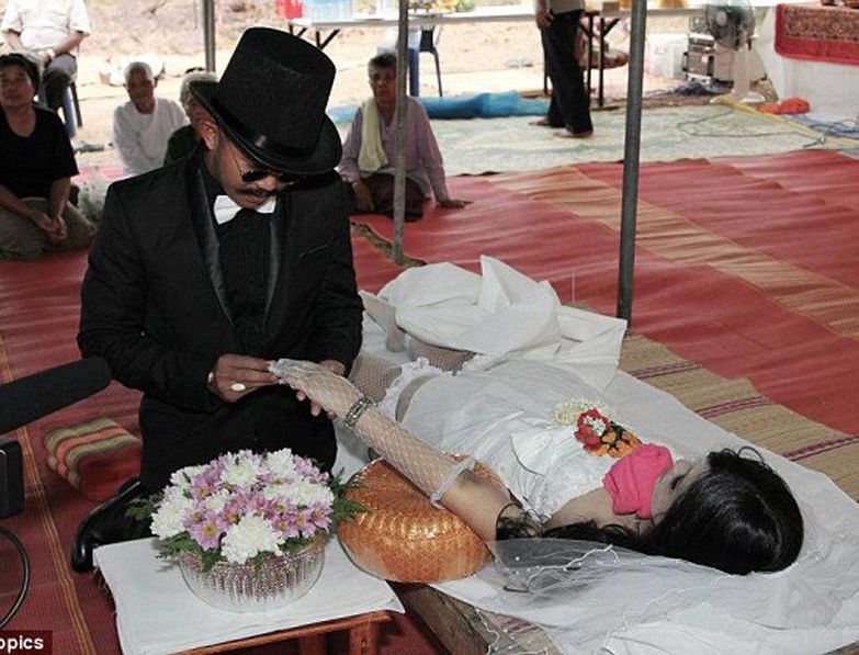 泰国痴情男子与女友尸体完婚