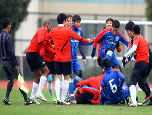 申花热身赛上演全武行 不踢球猛踹人