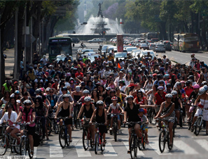 墨西哥举行高跟鞋自行车赛 迎接三八节