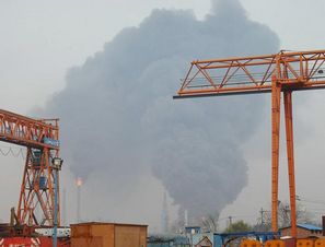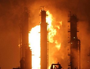 江西九江炼油厂发生大火 浓烟滚滚(图)