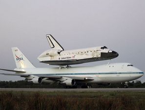 美国发现号飞越华盛顿与民众“告别”