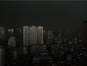广州遭大雨袭击白昼如黑夜 天空一片漆黑