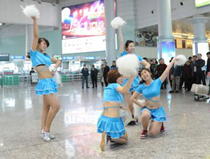 大连机场大雾五千人滞留 啦啦队表演安抚