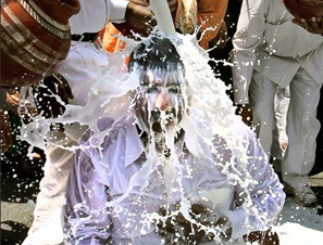 印度奶农倾倒大量牛奶 抗议奶价过低