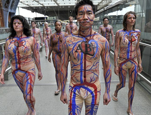 伦敦火车站“裸体秀”号召奥运前积极献血