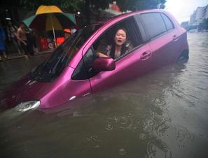 南昌发出暴雨橙色警报 市民街头抓鱼