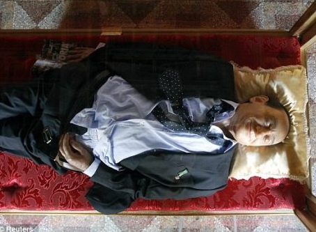 老贝之死蜡像亮相罗马 面带微笑手进裤裆