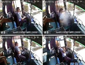 杭州客车司机遭铁块击腹 忍痛安全停车