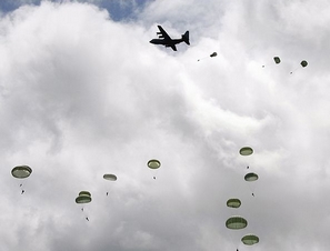 美陆军表演跳伞纪念诺曼底登陆68周年