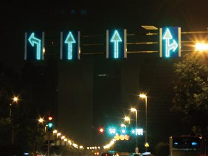 香港西路与太平角六路路口安发光标志 雨雾天也很亮