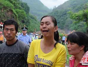 四川泥石流现场:失踪者妻子情绪失控