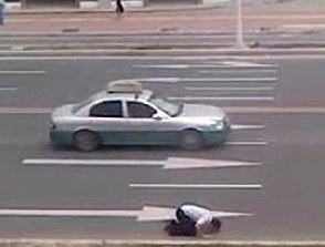 年轻男子为求妻原谅 叩首跪行200米