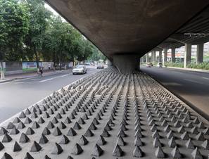 广州天桥底筑水泥锥驱赶流浪汉