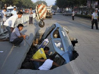 河北邯郸发生路面塌陷 出租车坠入坑中