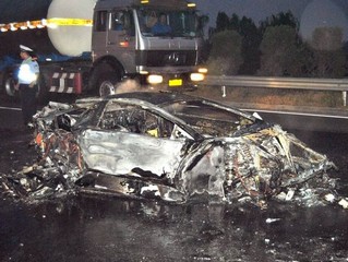 江苏价值400万兰博基尼起火烧成废铁