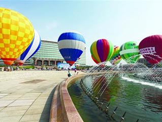 热气球表演惊艳天空 跳伞女皇仙女散花