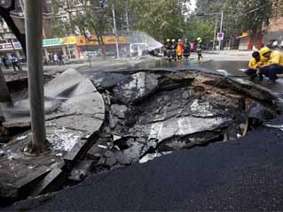 石家庄:天然气管道爆燃 惊现十米宽大坑
