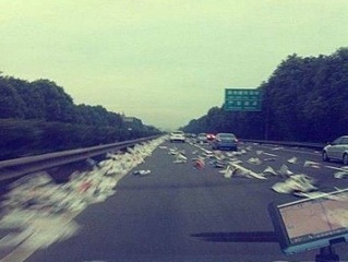 游客因高速路堵车随地大小便 高速变公厕/图