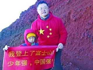 组图:“鹰爸”带孩子登富士山宣扬保钓