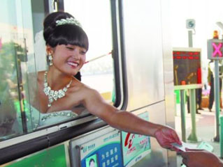 收费员穿婚纱国庆不离岗 新郎收费站迎亲