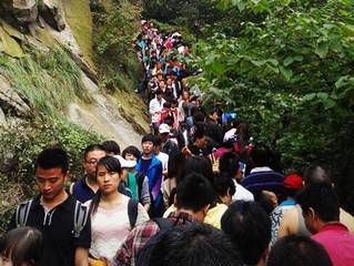 景区游客量剧增 大量游客被困华山顶