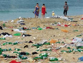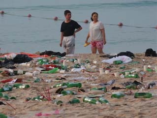 三亚3公里海滩遍布50吨垃圾