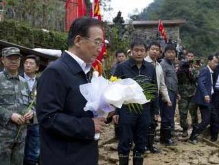 温家宝再抵彝良 为遇难学生和村民献花送别