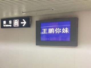 北京地铁电视屏显示“王鹏你妹”