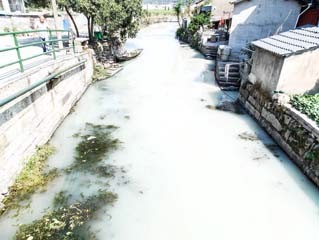 浙江绍兴河水受污变身“牛奶”