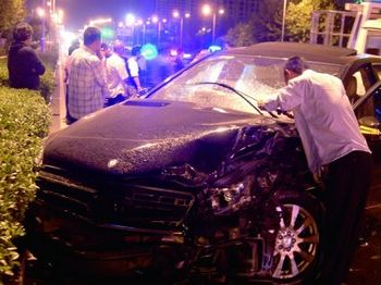 吉利逆行致4车连环相撞 百万豪车几近报废