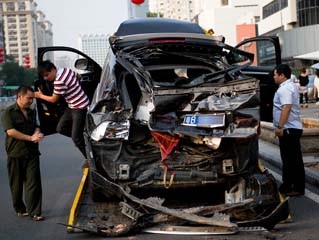 深圳一保时捷被从前后夹扁 司机竟安然无恙