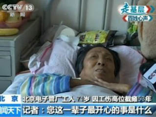 央视问截瘫老人开心事 护士:再问该掉泪了