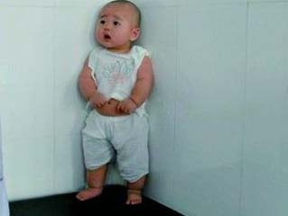 宝宝怕打针躲墙角 超萌表情爆红网络
