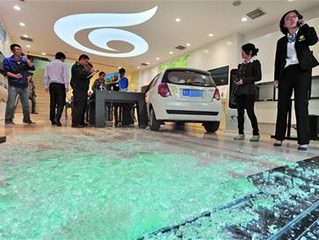 女司机挂错挡 轿车撞进电信营业厅如拍电影