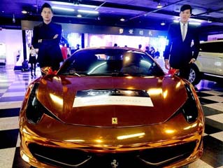 亮瞎了!黄金法拉利婚车“霸气”亮相沈阳