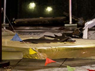 上海步行街鲨鱼缸爆裂 3条鲨鱼死亡15人受伤