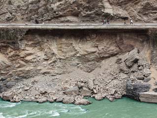 四川60米长路面在陡崖悬空 摇摇欲坠