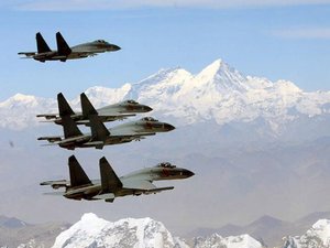 中国空军歼-11编队飞掠珠穆朗玛峰