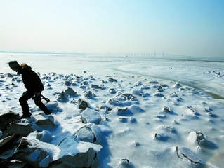 胶州湾浮冰成堆 上演“瀚海阑干百丈冰”