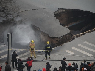 太原路面再次塌陷 煤气管道被压断
