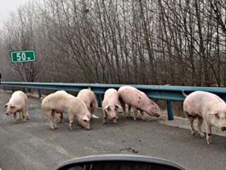 武汉运猪车侧翻 40头猪路上“散步”致堵车