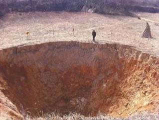 四川一村庄轰隆隆响6昼夜后现直径20米天坑
