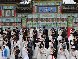 广东肇庆百对新人参加接吻比赛