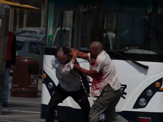 深圳两男子在移动警车前厮打 一人浑身是血
