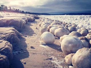 美海滩现海量巨型神秘冰球 每个或重68斤