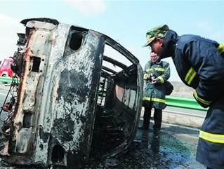 青银高速一辆面包车打滚烧 司机被活活烧死