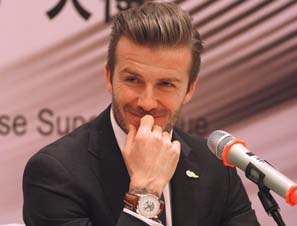 贝克汉姆豪饮青啤吃海鲜 吮手指托腮卖萌