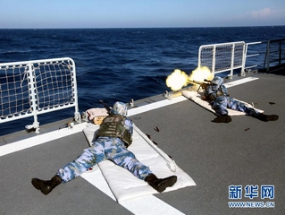 第十四批护航编队特战队员进行实弹射击训练